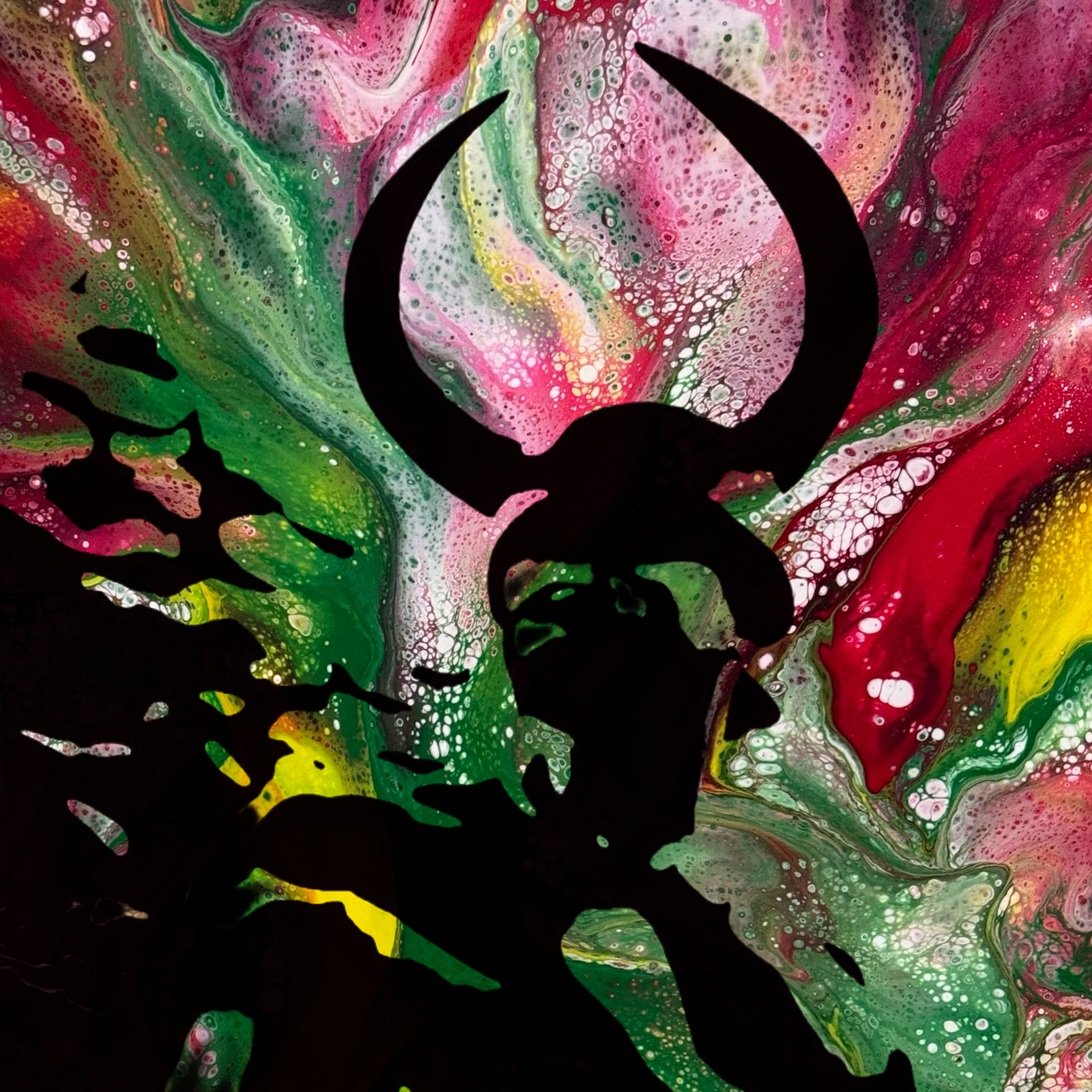 Created for Grenada's 50th Independence National Art Show, this piece features a Jab Jab silhouette while the energy and pride of Grenada's National colors dance and flow in the background.